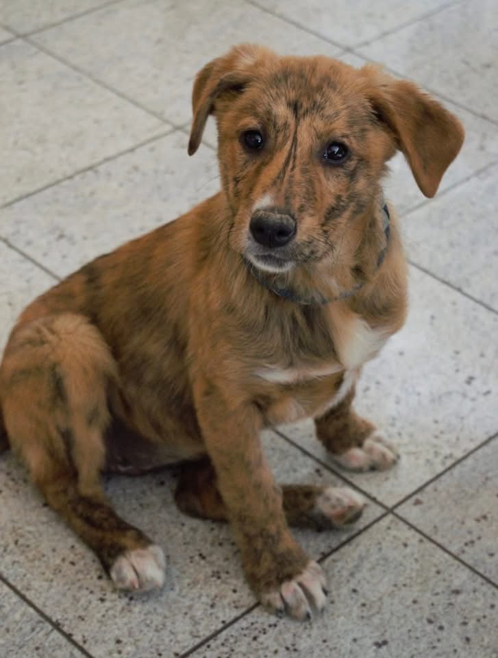 Ava ist ein Mädchen, laut Tierarztschätzung ca. 4 Monate alt (geb. 20.11.2025), wiegt bereits jetzt 12kg und ist 42cm groß. Wir haben wirklich keine Ahnung welche Rassen in ihr stecken, vielleicht das gestreifte von einem Boxer oder Bardino. Auf jeden Fall, ist sie ein wunderschöner besonderer Mischling.