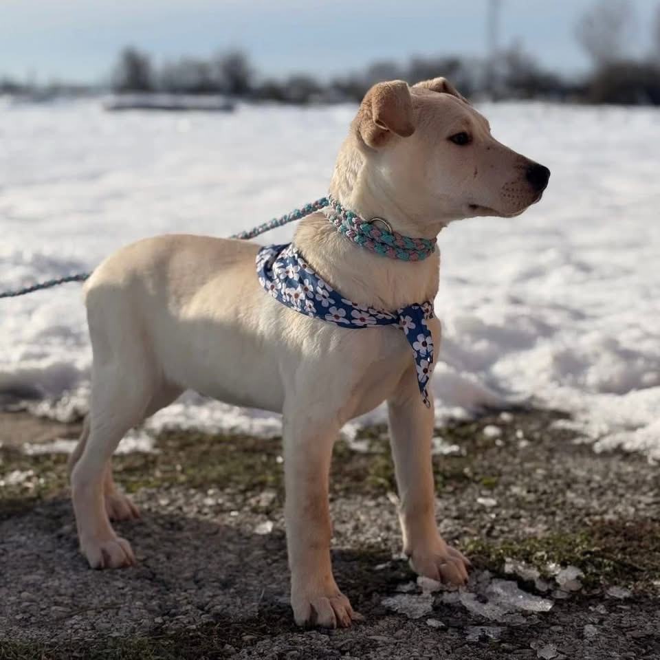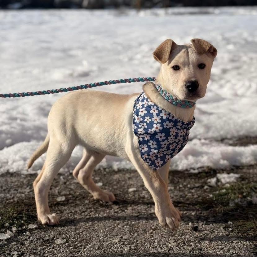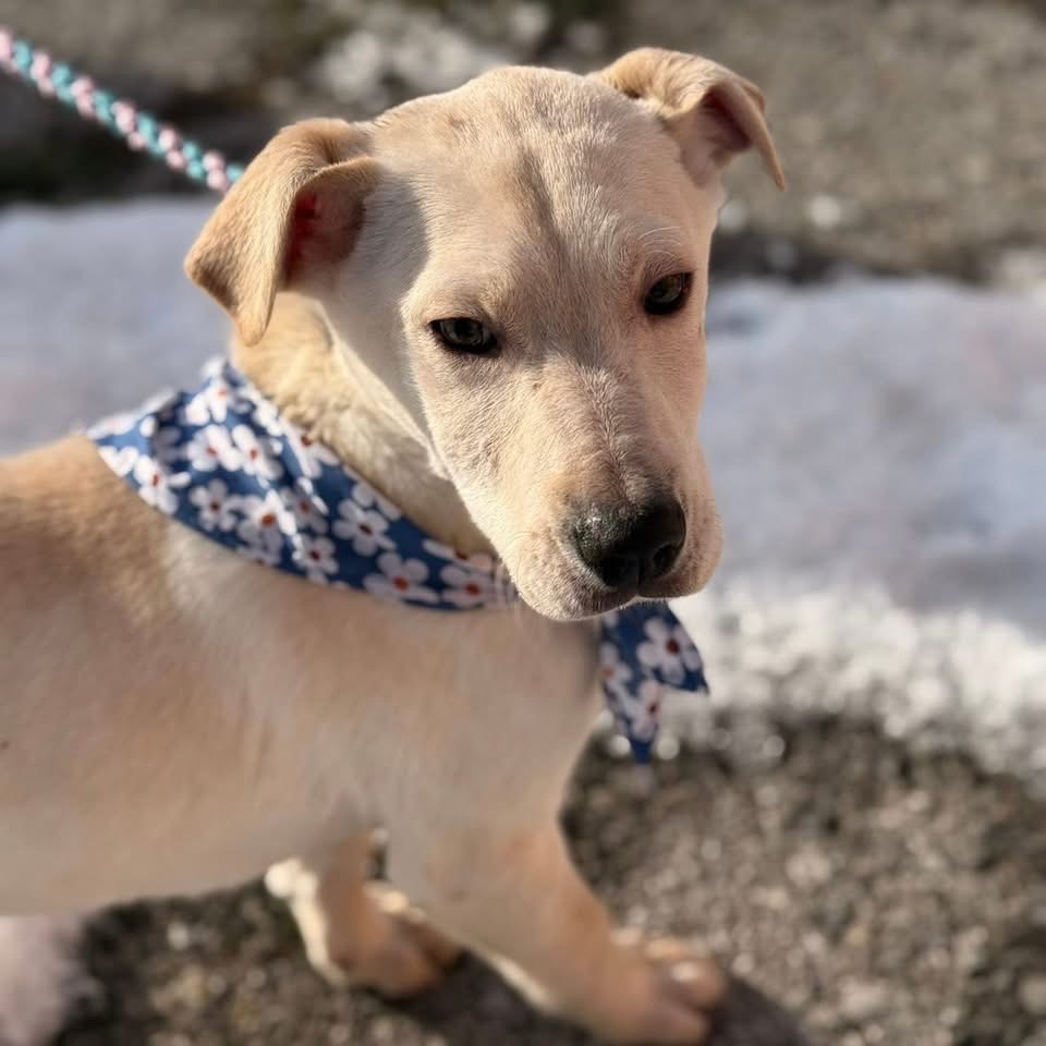 Balto ist ein Bub, er ist laut Tierarztschätzung ca. 3 Monate alt (geb. 06.10.2025), zur Zeit wiegt er 5,7 kg und ist 36cm groß. Vermutet wird ein Labrador – Shar Pei Mischling. Er wird voraussichtlich bis 25kg kniehoch/mittelgroß. Ausreisebereit ab Anfang Februar.