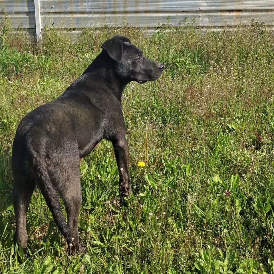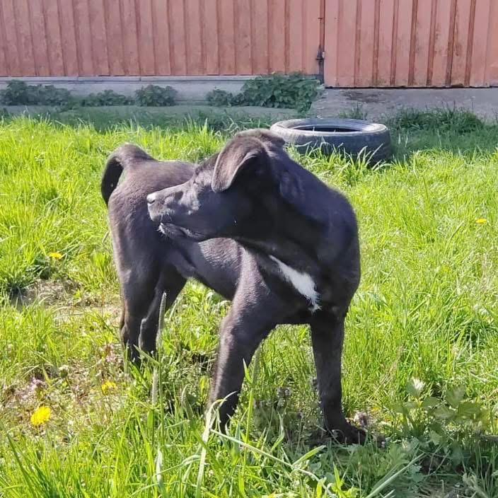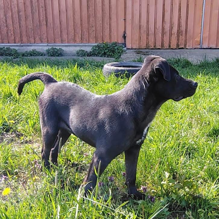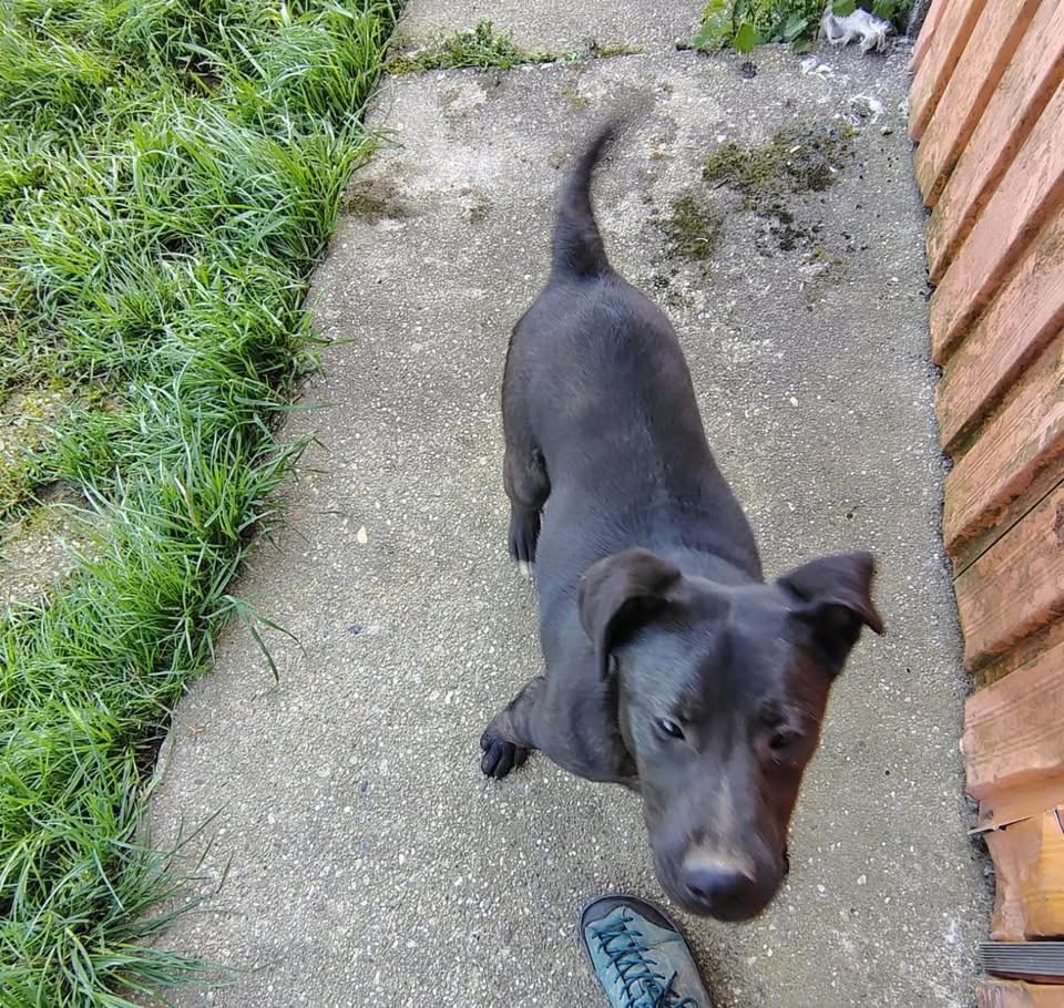 Bart ist ein Bub, er ist laut Tierarztschätzung ca. 6 Monate alt (geb. 06.10.2025), zur Zeit wiegt er 16,8 kg und ist 46 cm groß. Er ist ein absoluter Querbeet Mischling, schaut wie ein Labrador – Shar Pei – vielleicht sogar etwas von Petterdale Terrier Mischling. Eine Schwester ist viel zierlicher und hat mehr von einem Labrador, andere Schwester sieht aus wie eine Save-Bracke in bikolor braun-weiß.