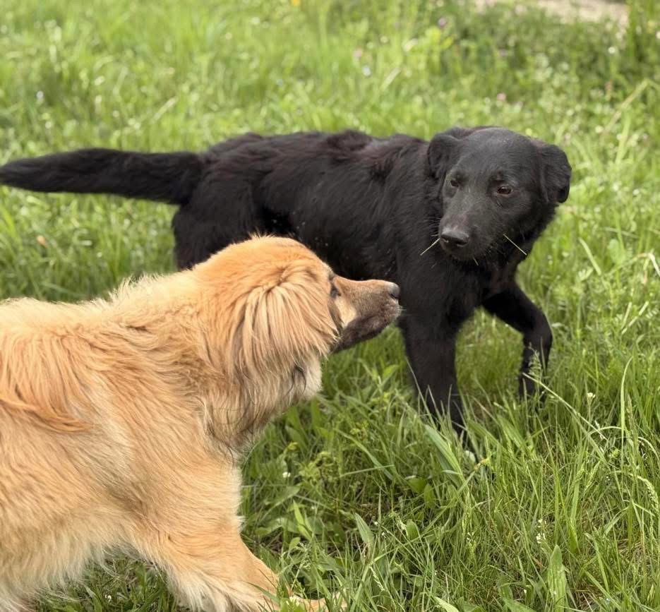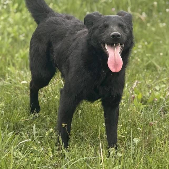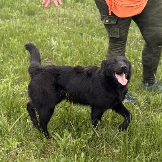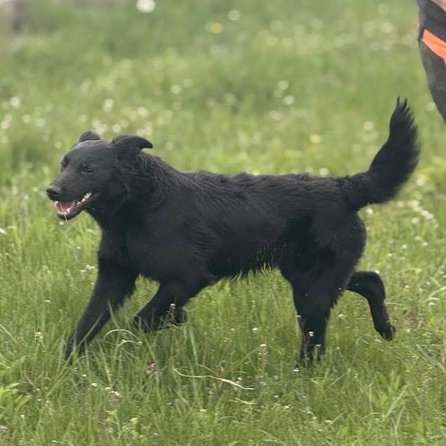 Bo ist ein Bub, laut Tierarztschätzung ca. 1 Jahr alt (geb. 24.05.2025), wiegt 11,5kg und ist 45cm groß. Vermutet wird ein kleinerer Retriever-Mudi Mischling.