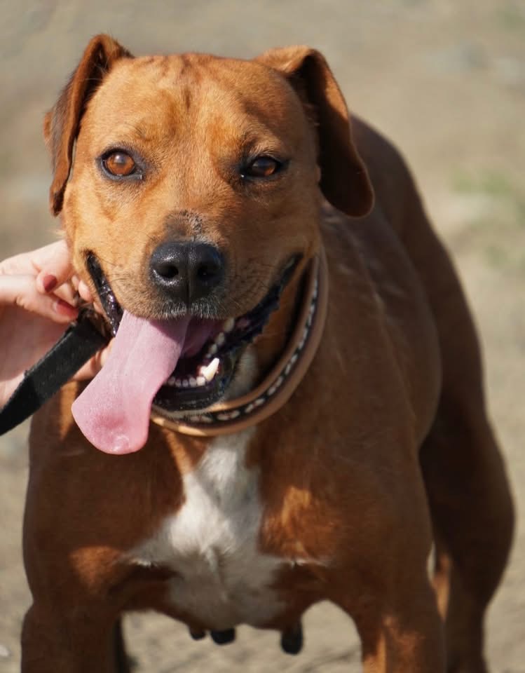Cora ist eine Hündin, laut Tierarztschätzung ca. 2 Jahre alt (geb. 01.04.2023), ca. 48 cm groß und wiegt 19 kg. Vermutet wird ein Staffordshire Terrier Mischling. Aus diesem Grund kann sie leider nicht nach Deutschland vermittelt werden.