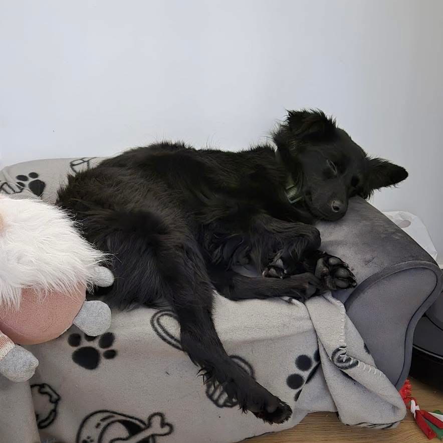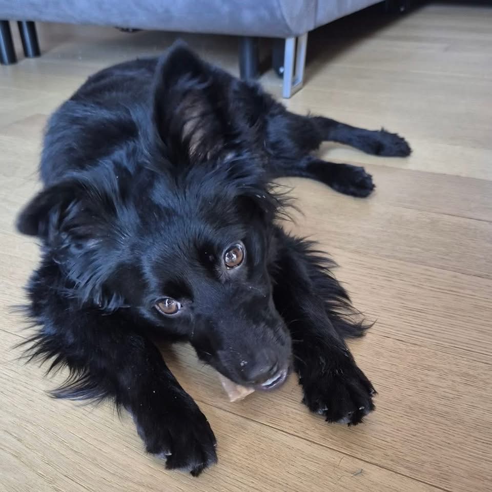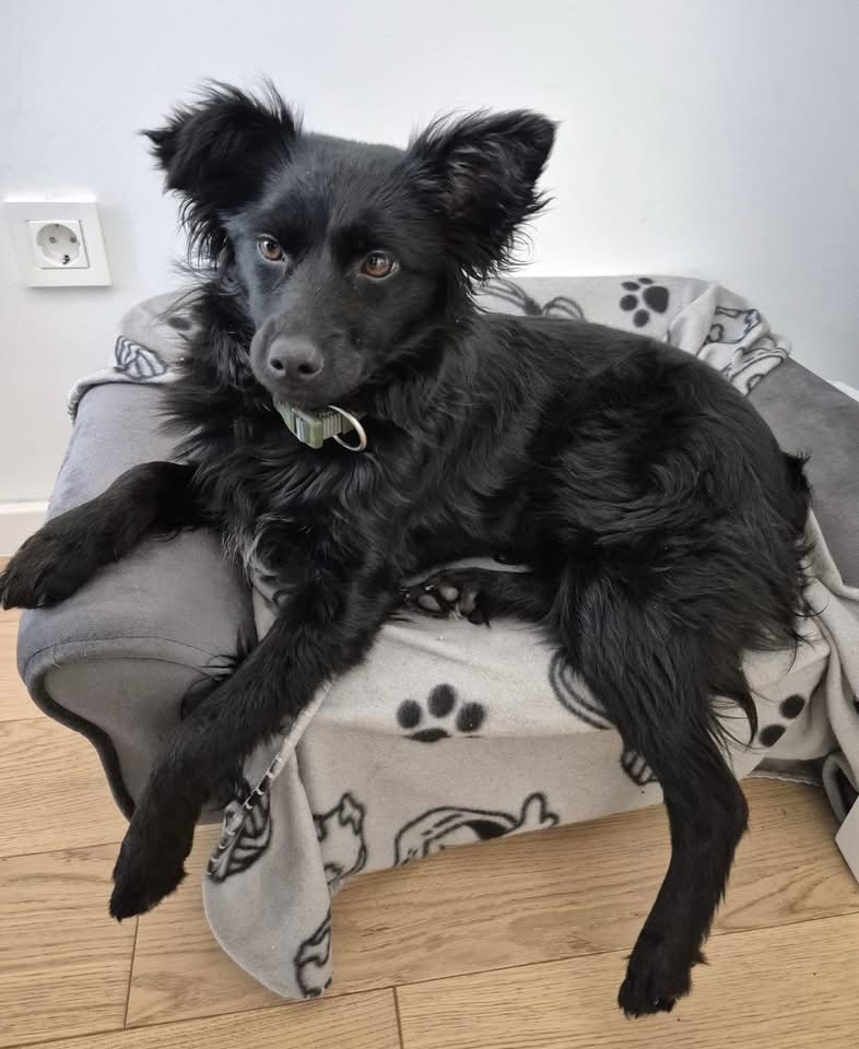 Dana ist ein Mädchen, sie ist laut Tierarztschätzung ca. 1 Jahr alt (geb. 24.09.2024), wiegt 12 kg und ist 43 cm groß. Vermutet wird eine sehr zierliche Mudi – Kroatischer Schäferhund Mischlingshündin, auch rassentypisch ist sie mit Stummelschwänzchen geboren.