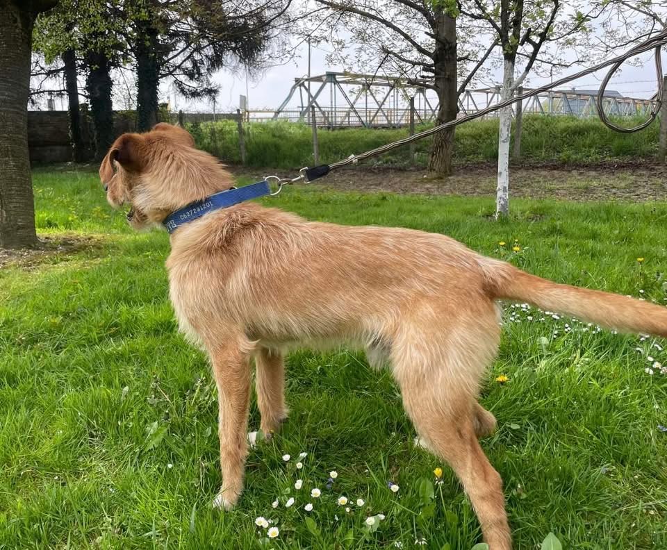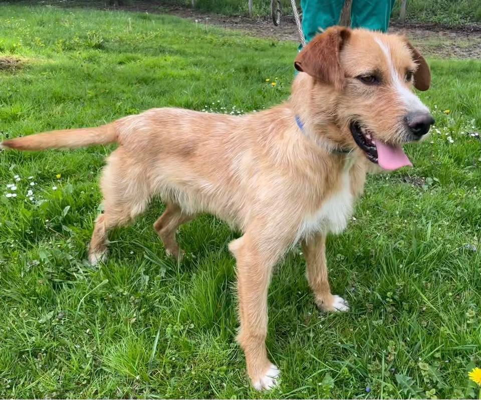 Danny zeigt sich als lebhafter, fröhlicher und verspielter junger Rüde. Er ist neugierig, offen und einfach ein richtig lieber Kerl. Mit seinem rauhaarigen, weizenfarbenen Fell und seinem ansteckenden Lächeln zieht er schnell alle Blicke auf sich. Er läuft gut an der Leine und genießt es, sich zu bewegen und die Welt zu entdecken.