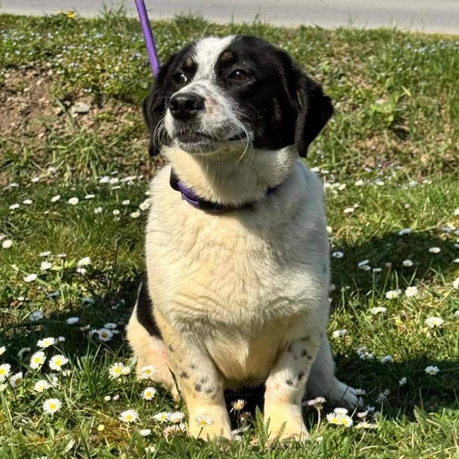 Dottie ist sehr futtermotiviert und manchmal etwas gierig beim Fressen – das lässt sich aber gut in Training umwandeln.