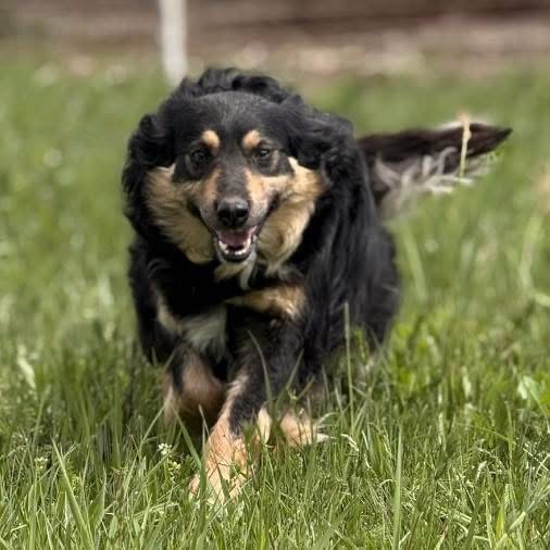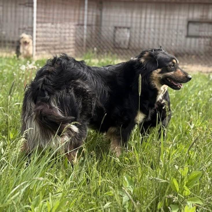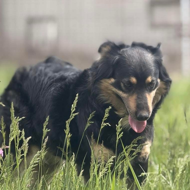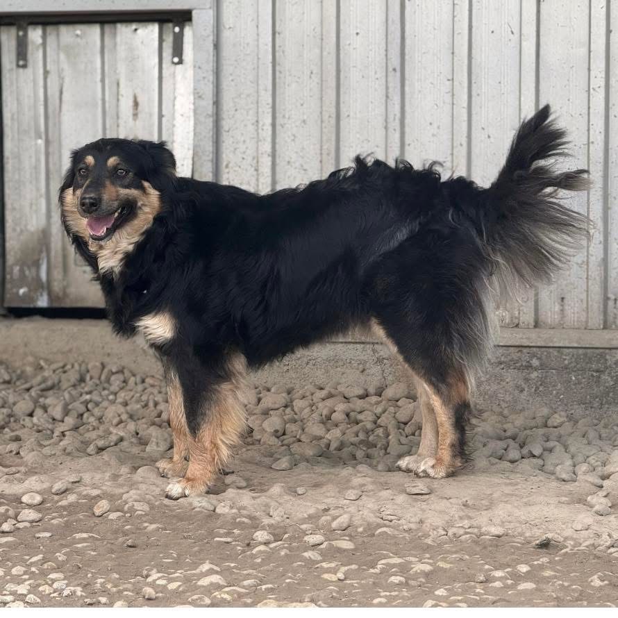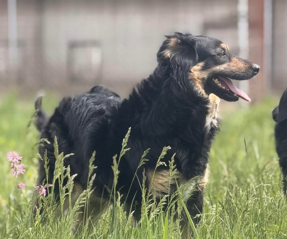 Edna ist ein Mädchen, laut Tierarztschätzung ca. 2 Jahre alt (geb. 11.05.2024), wiegt 22,8kg und ist 53cm groß. Vermutet wird ein Berner Sennenhund – Collie Mischling.