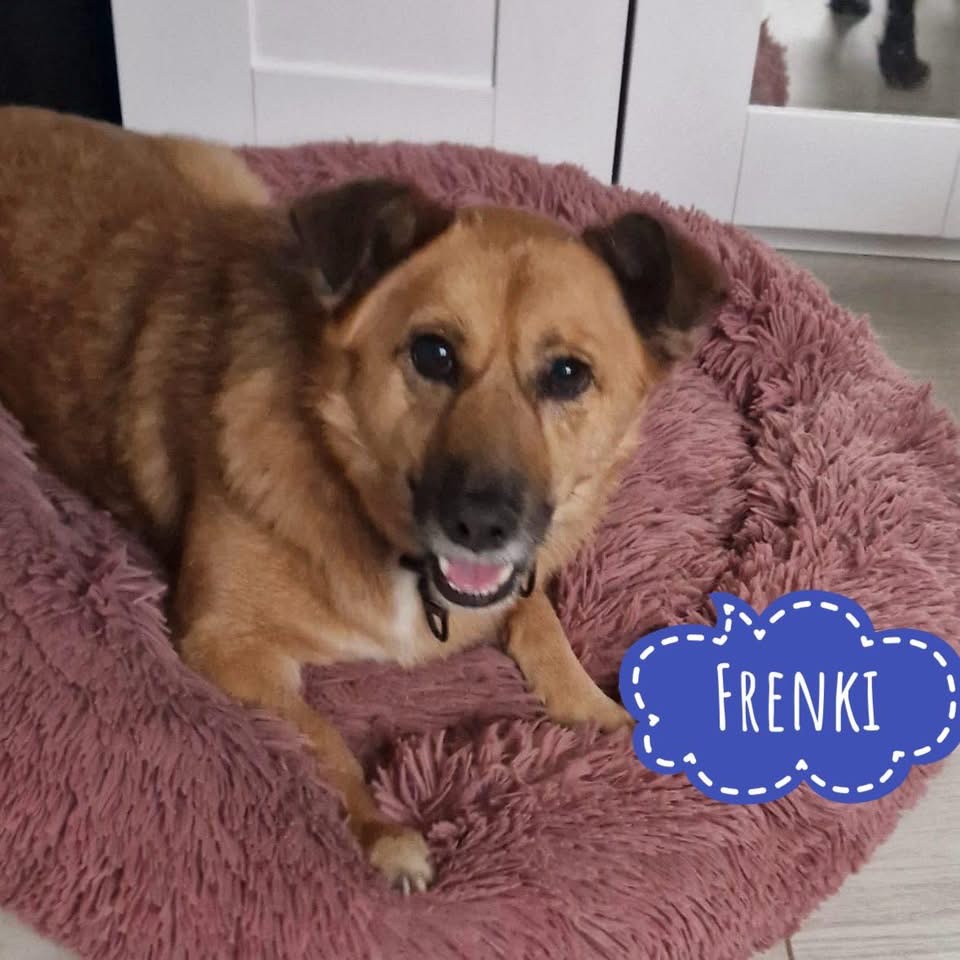 Frenki ist ein Rüde, laut Tierarztschätzung ca. 6 Jahre alt (geb. 20.01.2020), 41 cm hoch und wiegt 13,5 kg. Er wurde ohne Rute geboren. Vermutet wird ein Queerbeet Mischling, er schaut so süß aus, wie ein geschrumpfter Schäferhund.