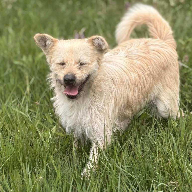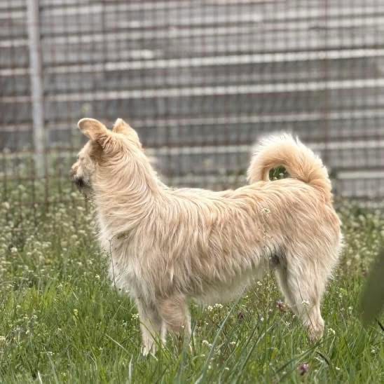 Fritz ist ein Bub, laut Tierarztschätzung ca. 1 Jahr alt (geb. 30.10.2024), wiegt 12kg und ist 45cm groß. Vermutet wird ein Norwich Terrier Mischling.