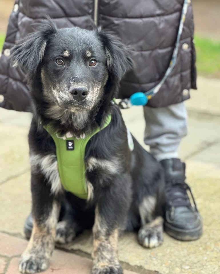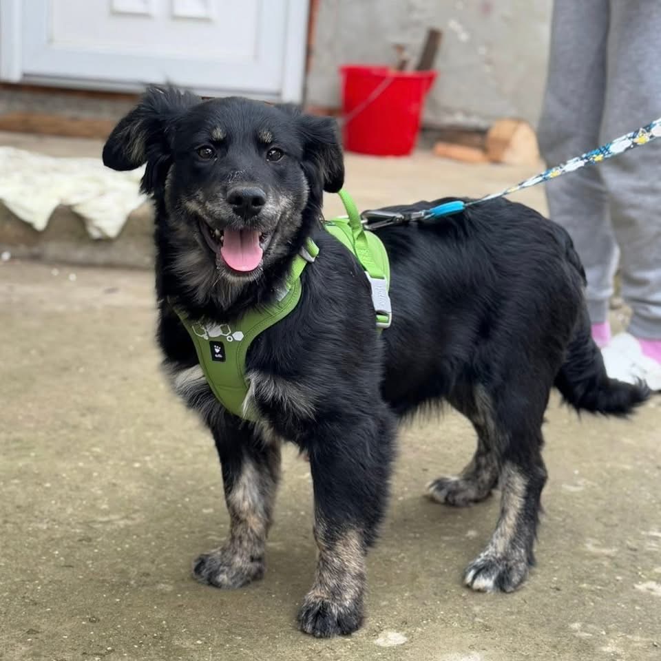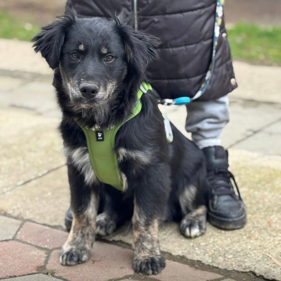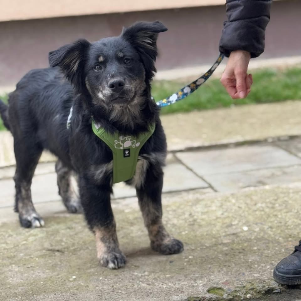 Ledo ist ein Bub, laut Tierarztschätzung ca. 6 Monate alt (geb. 13.08.2025), wiegt aktuell 16 kg und ist ca. 40 cm groß. Vermutet wird ein Kroatischer Schäferhund – Mudi Mischling.