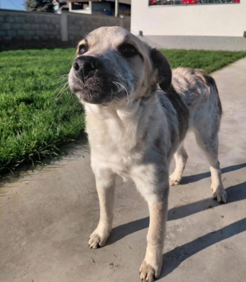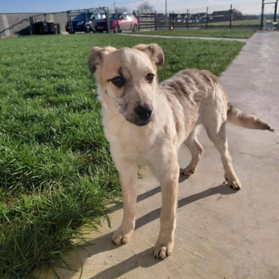 Leny (wird Lenuschka gerufen) ist ein Mädchen, sie ist laut Tierarztschätzung ca. 5 Monate alt (geb. 27.07.2025), wiegt aktuell 11 kg und hat eine Schulterhöhe von 43 cm. Erwachsen wird sie kniehoch mittelgroß, mit bis ca. 20kg werden. Was für Rassen in ihr stecken, wissen wir nicht, sie ist ein Querbeet Mischling.