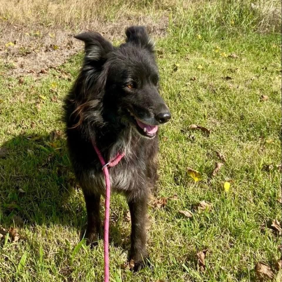 Lizzy ist ein Mädchen, laut Tierarztschätzung ca. 3,5 Jahre alt (geb. 05/2022), wir denken aber sie könnte auch etwas älter sein. Sie ist 56 cm groß und wiegt 14 kg. Vermutet wird ein Altdeutscher Hütehund – Mudi Mischling.