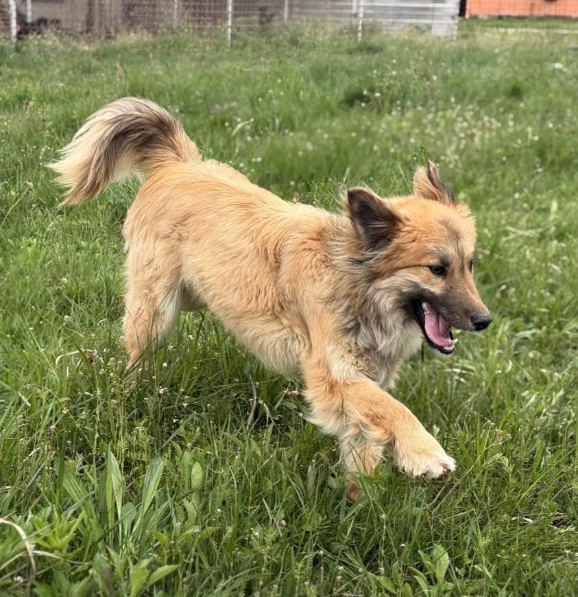 Loki ist ein Bub, laut Tierarztschätzung ca. 1 Jahr alt (geb. 24.02.2025), ist 48 cm groß und wiegt 14,6 kg. Vermutet wird ein Islandhund – Collie Mischling. Er hat ein wunderschönes, längeres Fell, das ihn zu einem echten Hingucker macht.