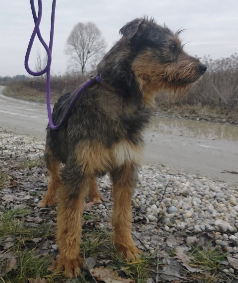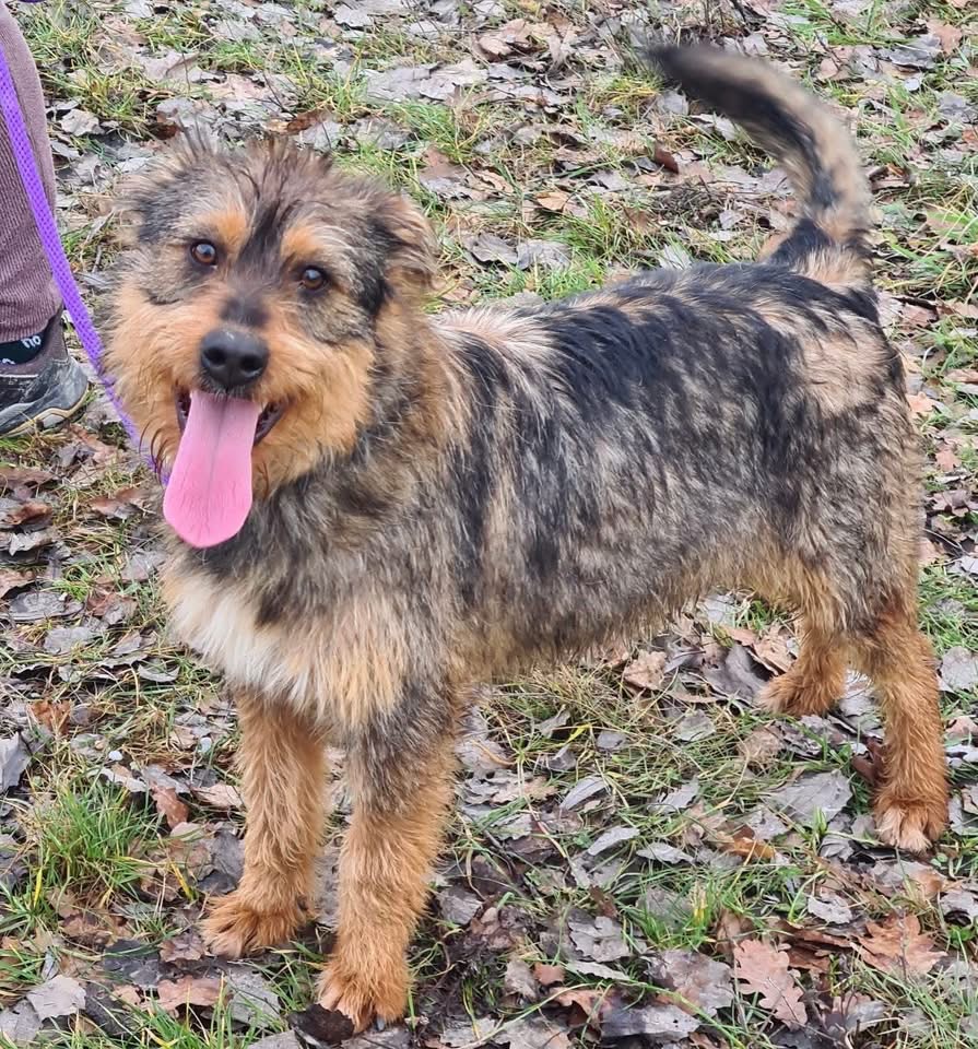 Lujko ist ein Bub, laut Tierarztschätzung ca. 2,5 Jahre alt (geb. 08.10.2023), 48 cm groß und wiegt 17 kg. Vermutet wird ein Terrier-Mischling, eventuell mit etwas Griffon- oder Schnauzer-Anteil.