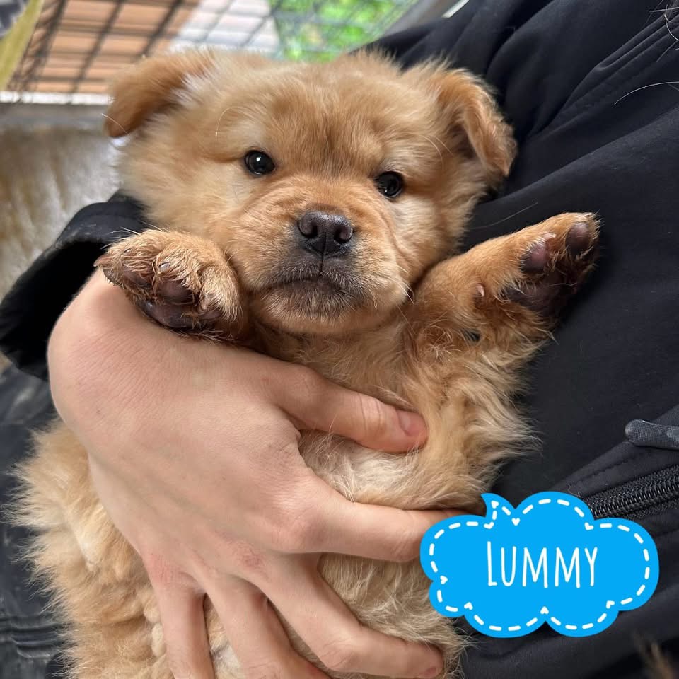 Lummy ist ein kleiner Bub, laut Tierarztschätzung ca. 3 Monate alt (geb. 15.09.2025), wiegt aktuell etwa 4 kg und ist ca. 27 cm groß. Vermutet wird, dass er ein kleinerer Chow-Chow-Mischling ist.