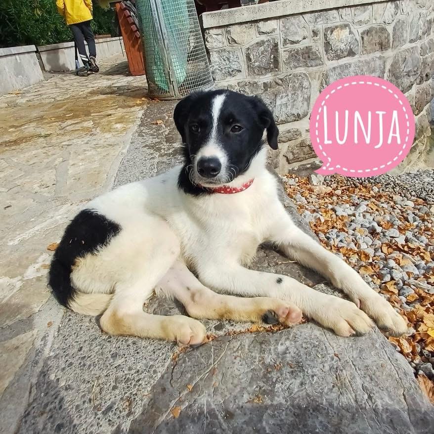 Lunja ist ein Mädchen, sie ist laut Tierarztschätzung ca. 8 Monate alt (geb. 25.05.2025), hat eine Schulterhöhe von ca. 50 cm und wiegt etwa 20 kg. Optisch erinnert sie an einen Pointer, vermutet wird jedoch wegen Wesen, dass auch Border Collie in ihr steckt. Sie ist noch nicht kastriert, dies würde aber vor der Ausreise erfolgen.