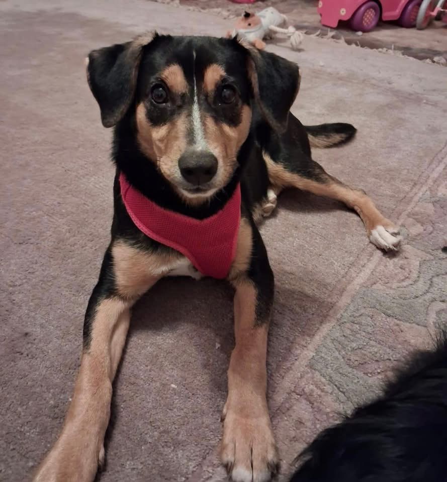 Mia ist ein junges Hundemädchen, laut Tierarztschätzung ca. 7 Monate alt (geb. 10.06.2025), 42 cm groß und wiegt 11,3 kg. Vermutet wird ein Bracke Mischling.