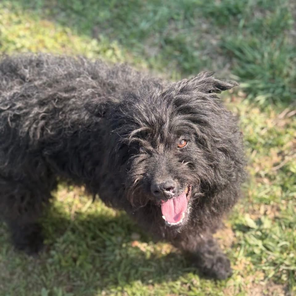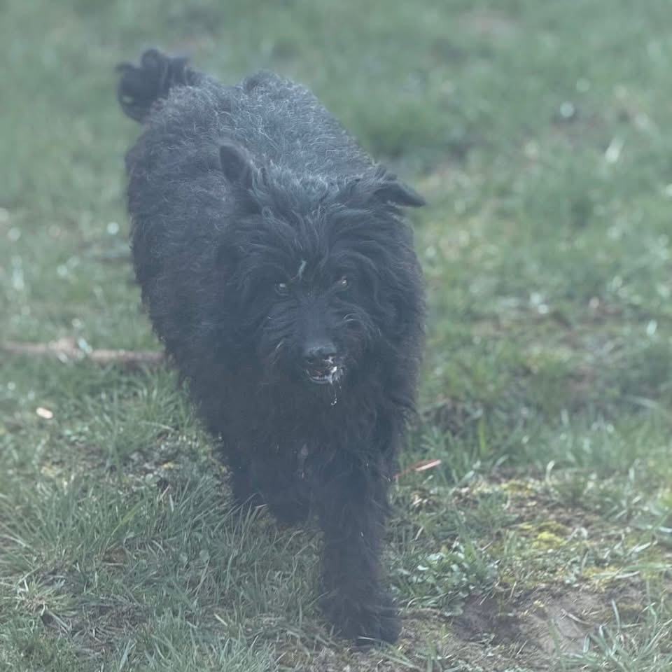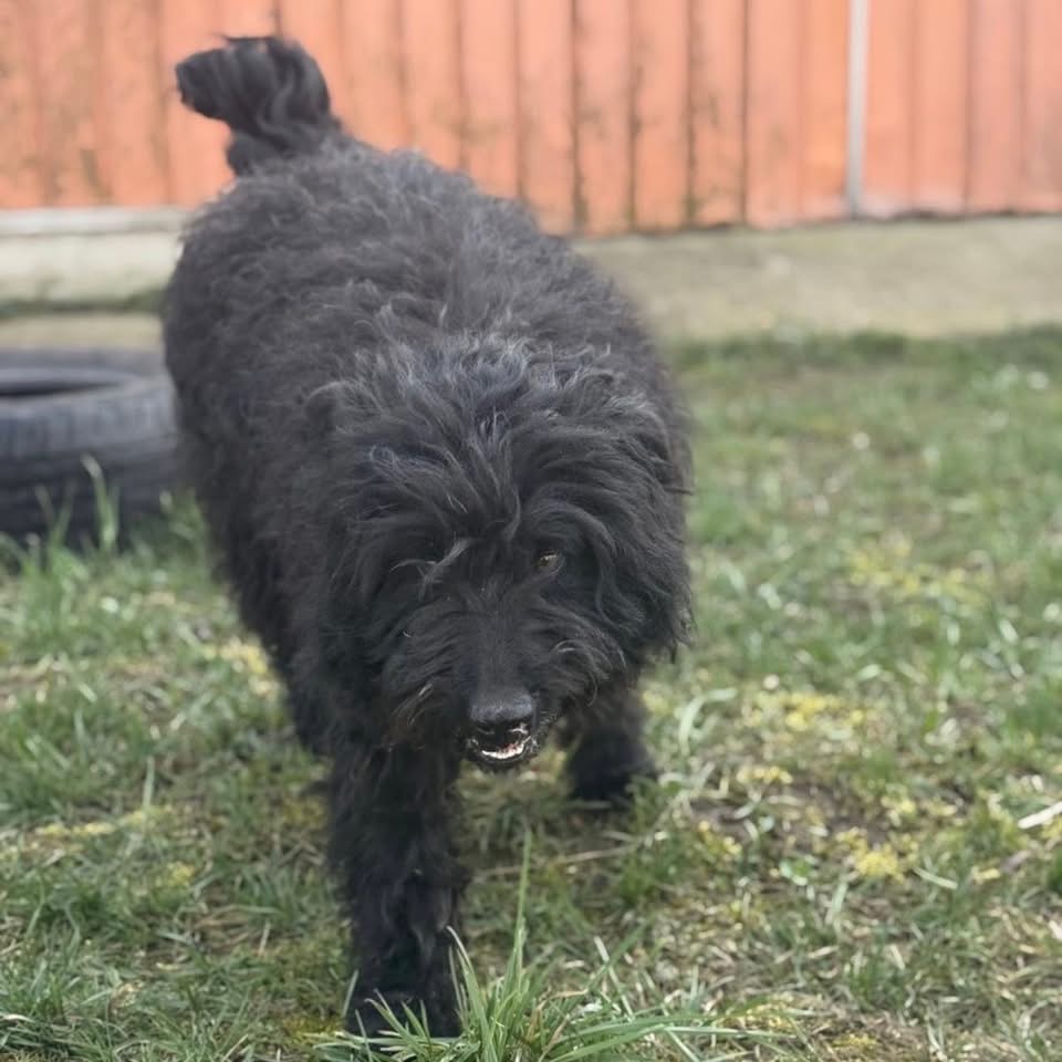 Miki ist ein Mädchen, laut Tierarztschätzung ca. 3 Jahre alt (geb. 07.01.2023), wiegt 14,5 kg und ist 50 cm groß. Vermutet wird ein Puli – Mudi – Tibet Terrier Mischling.