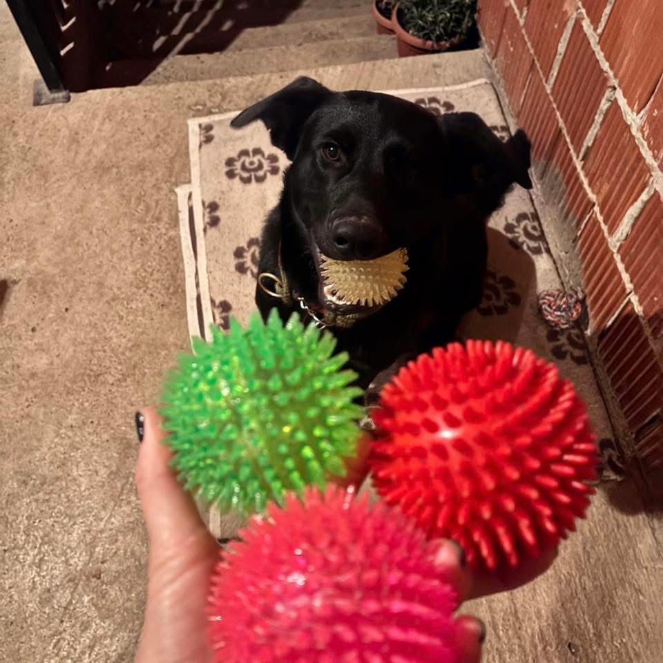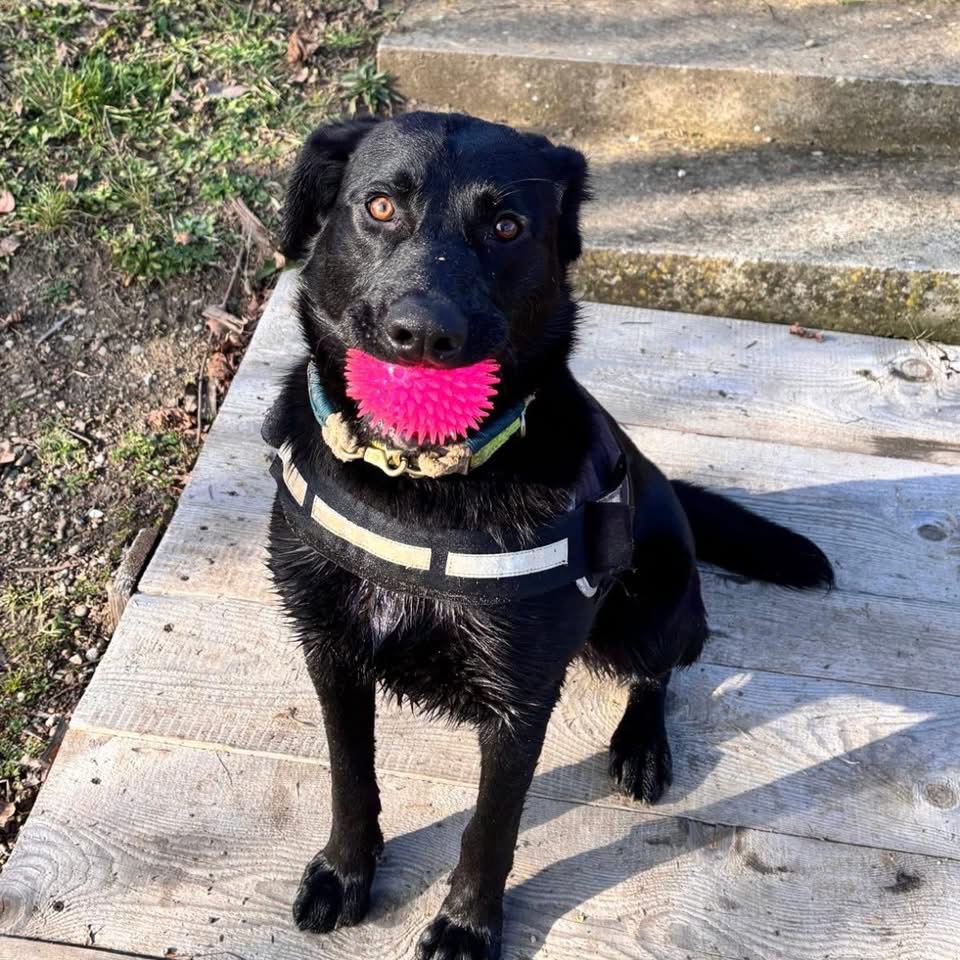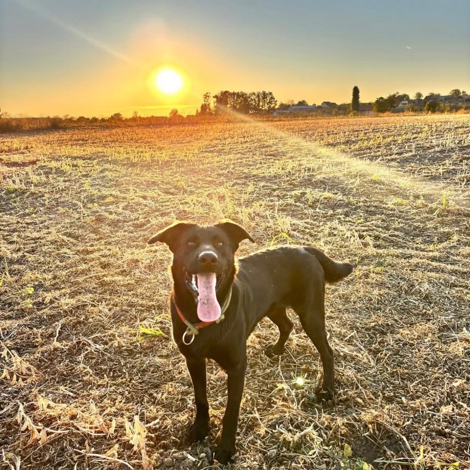 Mio ist ein Rüde, er ist laut Tierarztschätzung ca. 1 Jahr alt (geb. 14.03.2025), wiegt 29 kg und hat eine Schulterhöhe von 54 cm. Vermutet wird ein Labrador-Mischling.