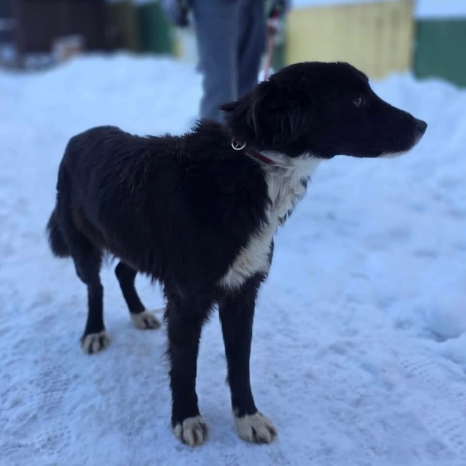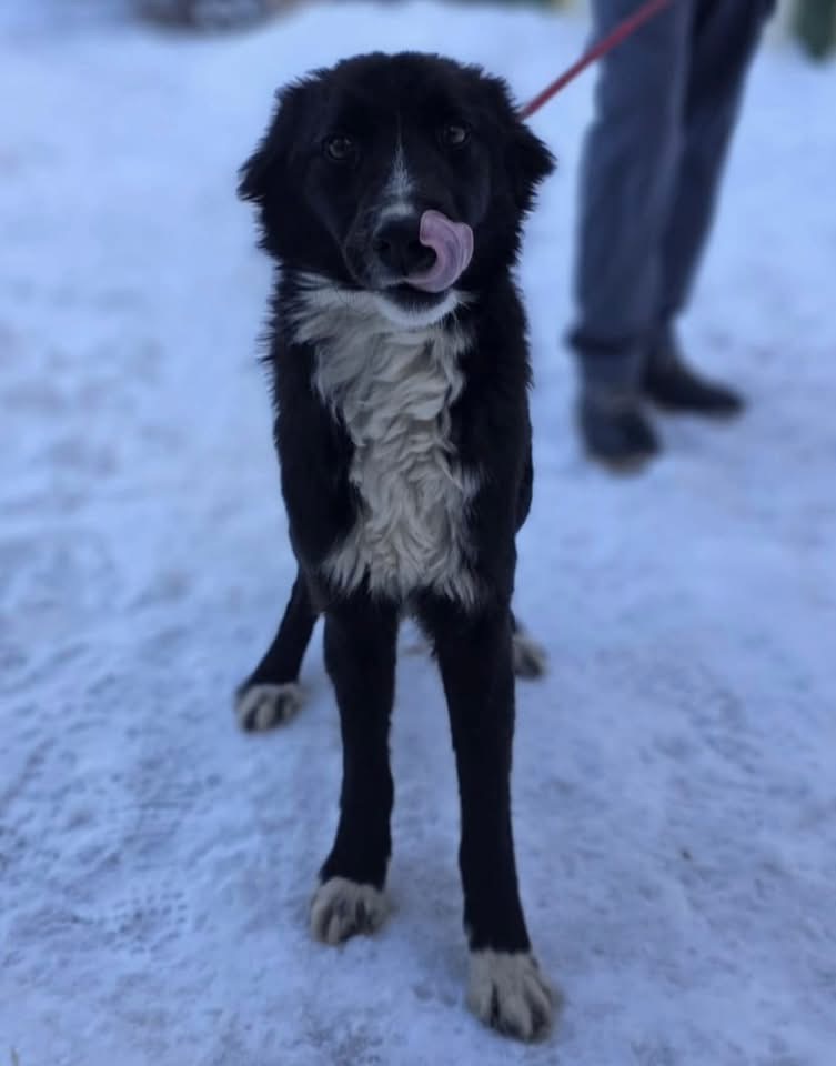 Miron ist ein Rüde, laut Tierarztschätzung ca. 10 Monate alt (geb. 20.03.2025), wiegt etwa 16 kg und ist knapp kniehoch. Vermutet wird ein Border Collie Mischling.