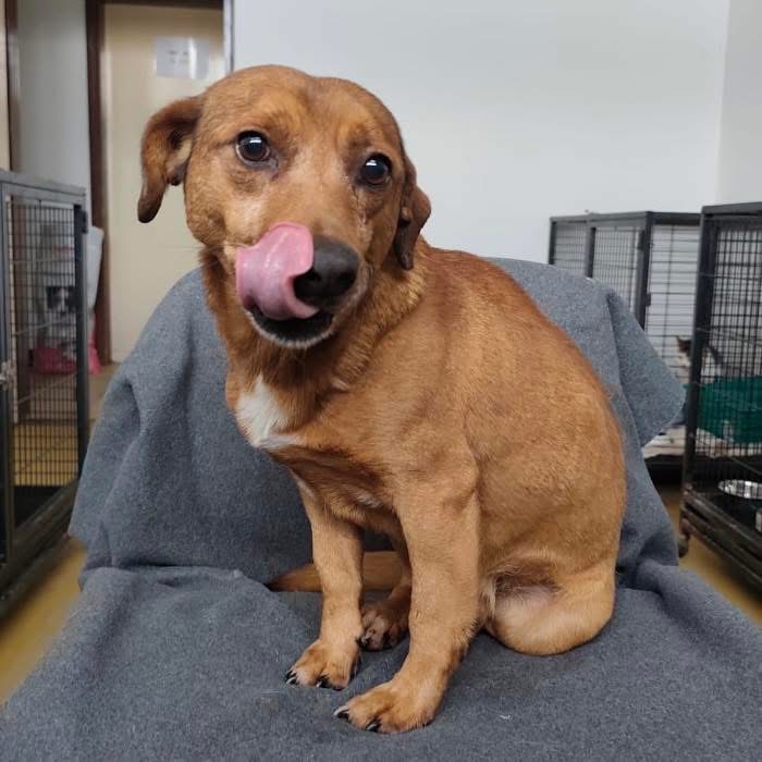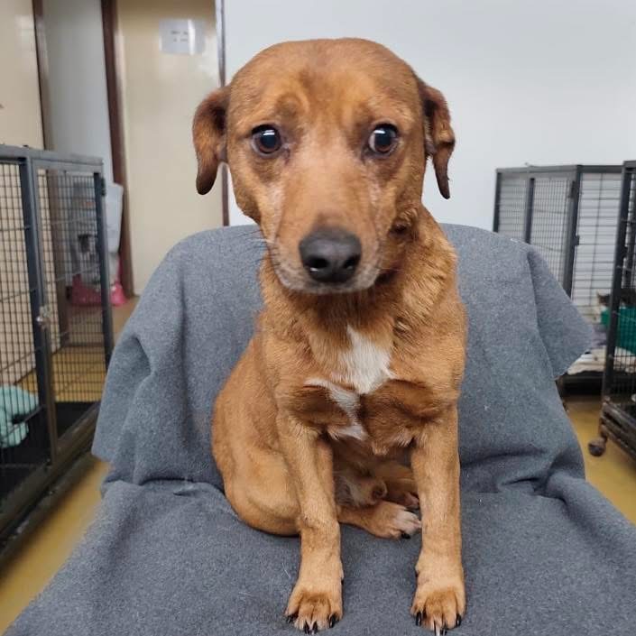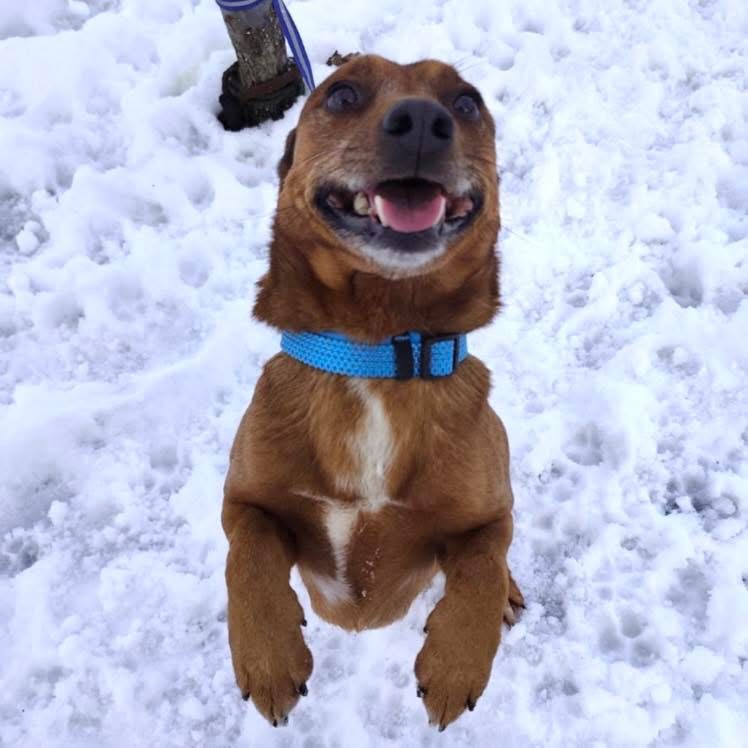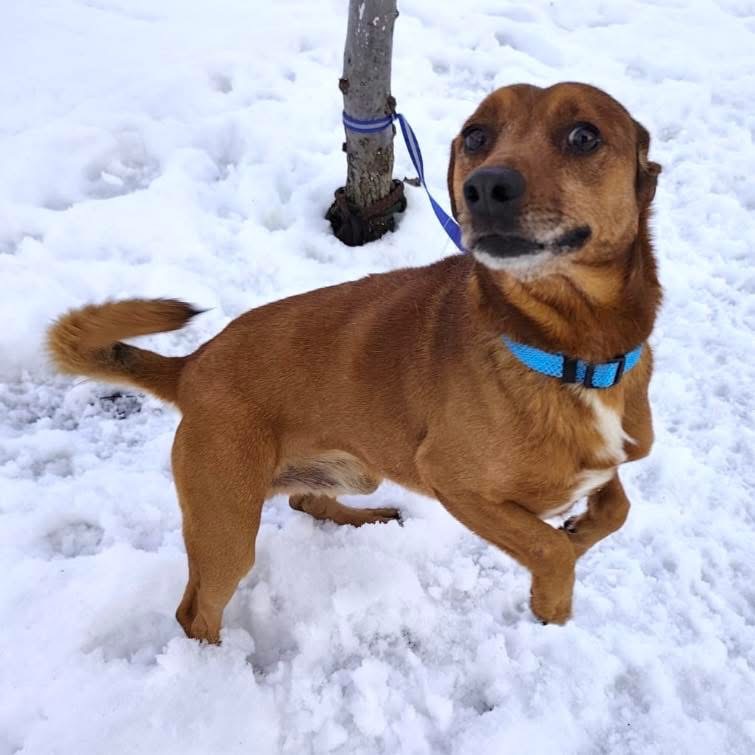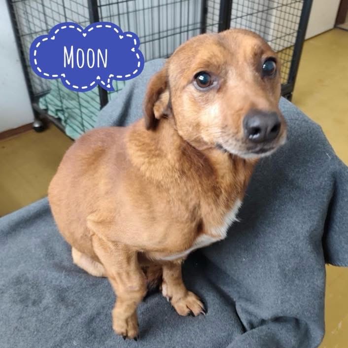 Moon ist ein Bub, laut Tierarztschätzung ca. 2,5 Jahre alt (geb. 08.05.2023), wiegt 11 kg und ist 44 cm groß. Vermutet wird ein Dackel-Mischling.