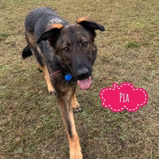 Pia ist ein Mädchen, sie ist laut Tierarztschätzung ca. 2 Jahre alt (geb. 15.09.2023), wiegt 26kg und ist ca. 63 cm groß. Vermutet wird ein Deutscher Schäferhund Mischling.