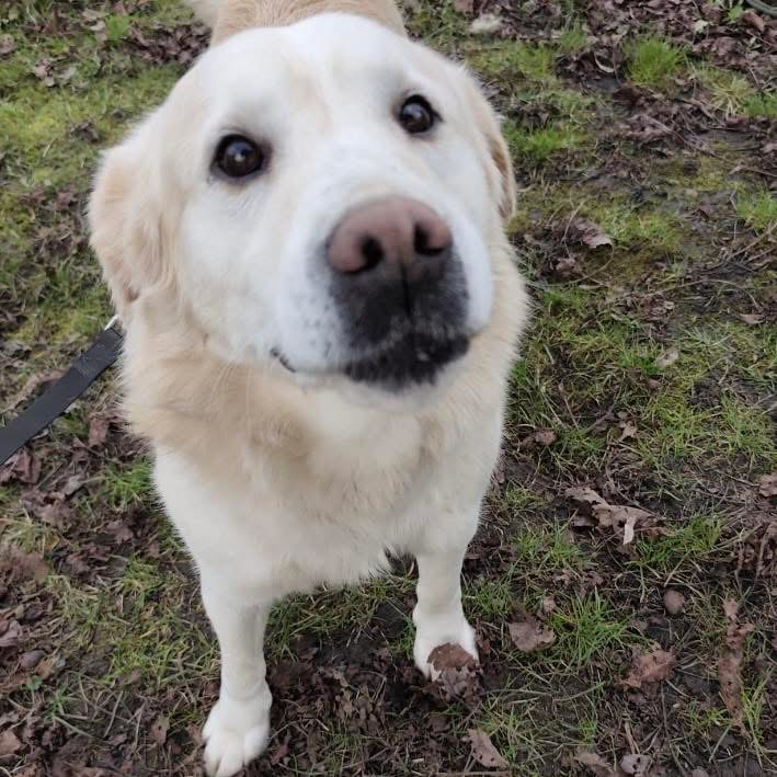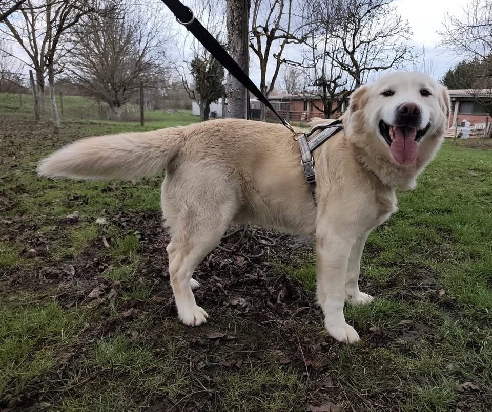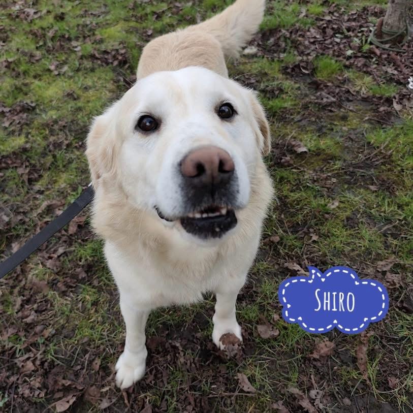 Shiro ist ein Rüde, laut Tierarztschätzung ca. 9 Jahre alt (geb. 09.01.2017), wiegt 28kg und ist 60cm groß. Vermutet wird ein Golden Retriever Mischling.