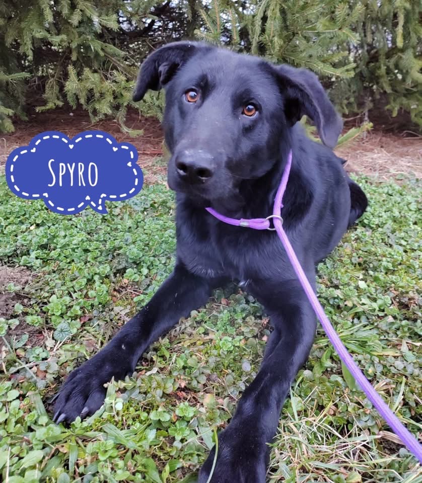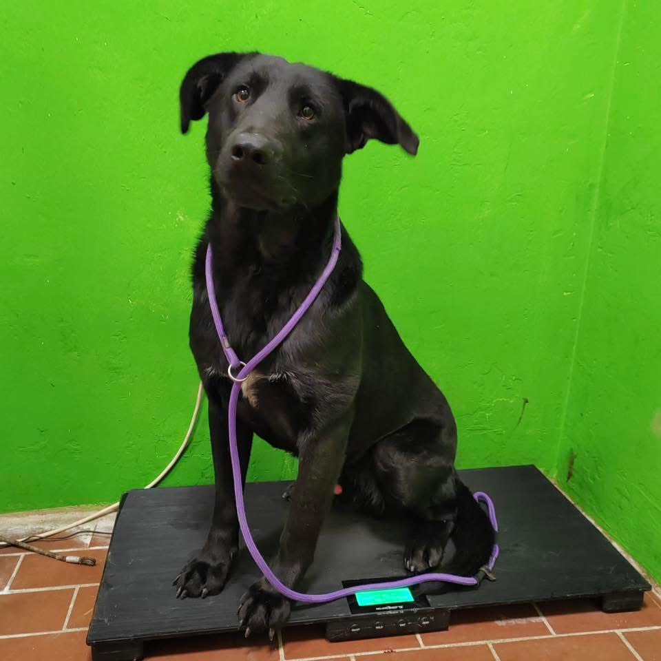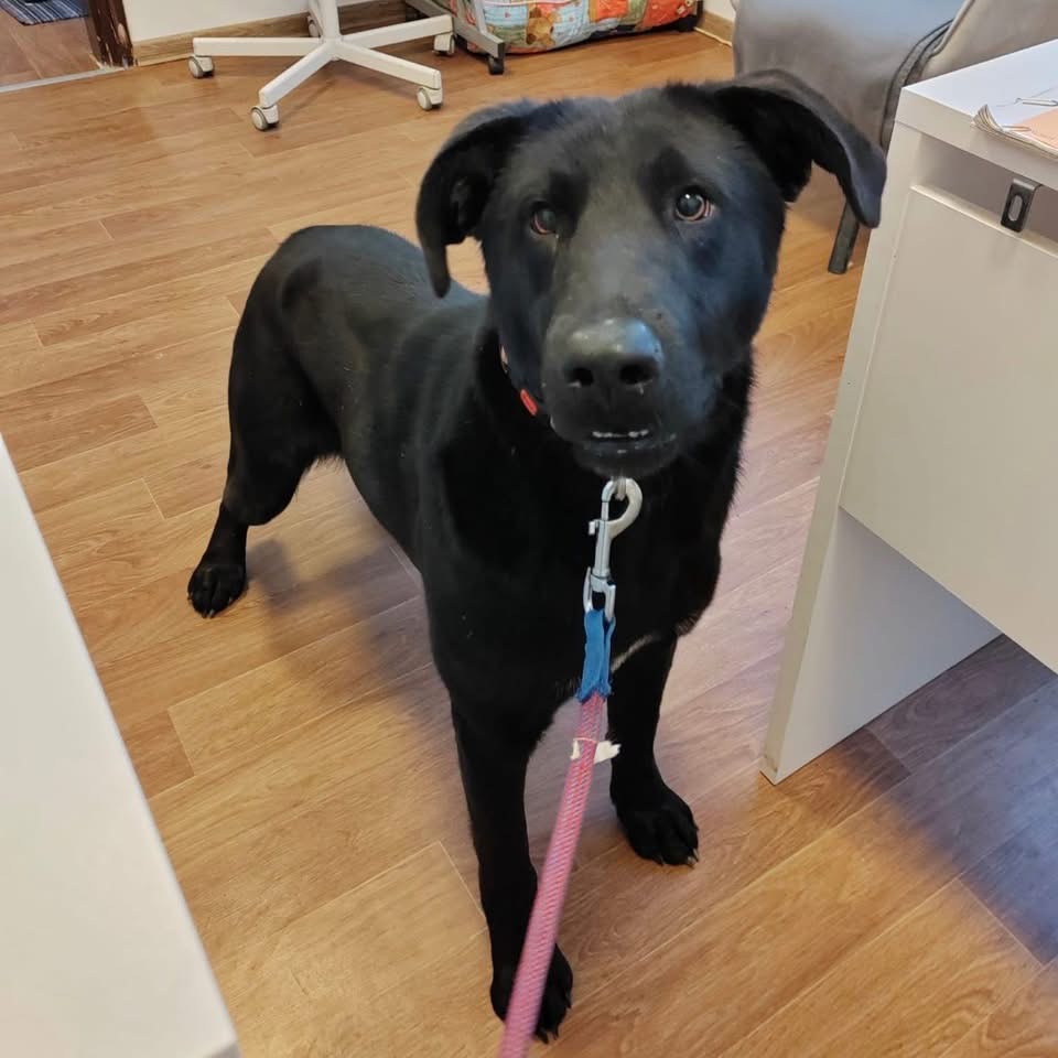 Spyro ist ein Rüde, laut Tierarztschätzung ca. 1 Jahr alt (geb. 26.11.2024), wiegt 26 kg und ist 57 cm groß. Vermutet wird ein Labrador-Mischling.