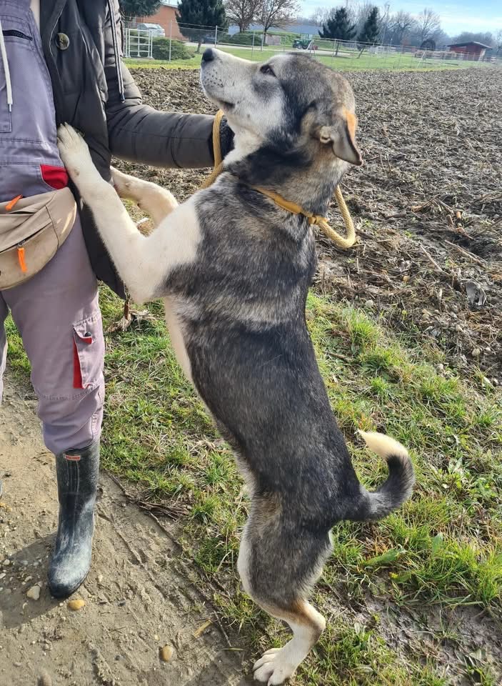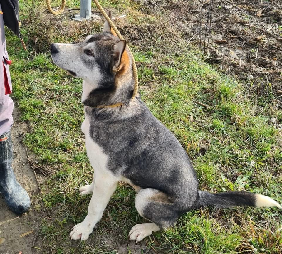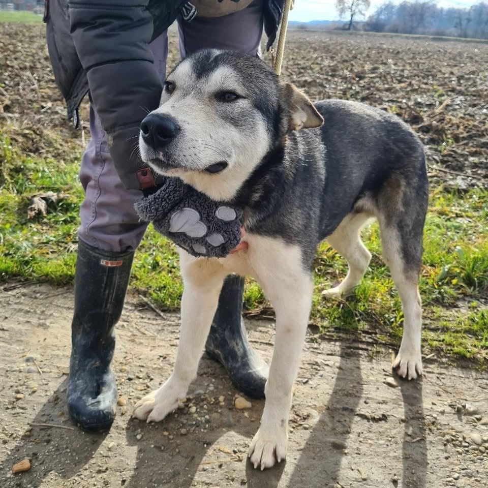 Sylt ist ein Bub, er ist laut Tierarztschätzung ca. 2 Jahre alt (geb. 01.02.2024), wiegt 27 kg und ist 64 cm groß. Vermutet wird ein Sibirischer Husky.