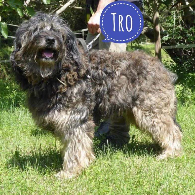 Tro ist ein Rüde, laut Tierarztschätzung ca. 11 Jahre alt (geb. 01.04.2015), wiegt ca. 32 kg und ist 59 cm groß. Vermutet wird ein Gos d’Atura Catalana.