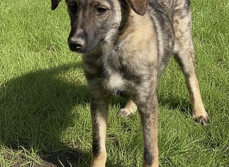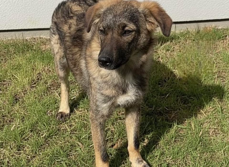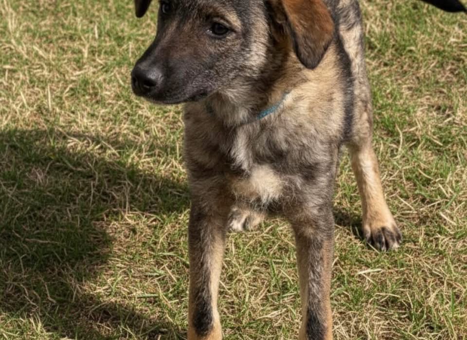 Uno ist ein Bub, laut Tierarztschätzung ca. 7 Monate alt (geb. 25.08.2025), wiegt aktuell 11 kg und ist etwa 40 cm groß. Vermutet wird ein Schäferhund Mischling, obwohl er von der Färbung auch Malinois Gene haben könnte. Trotzdem wird er voraussichtlich nicht zu großen, sondern kniehohen, mittelgroßen Hunden gehören.